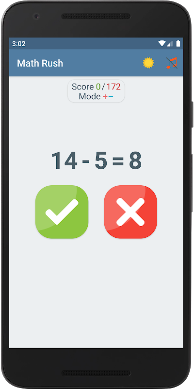 這款遊戲可讓您訓練大腦,保持思維定調,發展記憶力和思維能力。在遊戲中,您自己選擇要練習的示例。例如,如果您想學習乘法表,則只需選擇帶有乘法的示例並對其進行操作,乘法表將自行學習;如果您落後於除法,則只需選擇帶除法的方程式並對其進行運算即可。您不會注意到您將很快掌握分裂。遊戲具有15種模式,具有不同的方程式組合;對於每種遊戲模式,都會保存最高分,通過這些最高分,您可以不斷觀察進度並超越進度。該遊戲提供兩個主題:白天和黑夜,因此您可以在一天中的任何時間舒適地玩遊戲。為了使遊戲具有更好的交互性,娛樂性和參與性,它具有可隨意打開或關閉的配樂。
