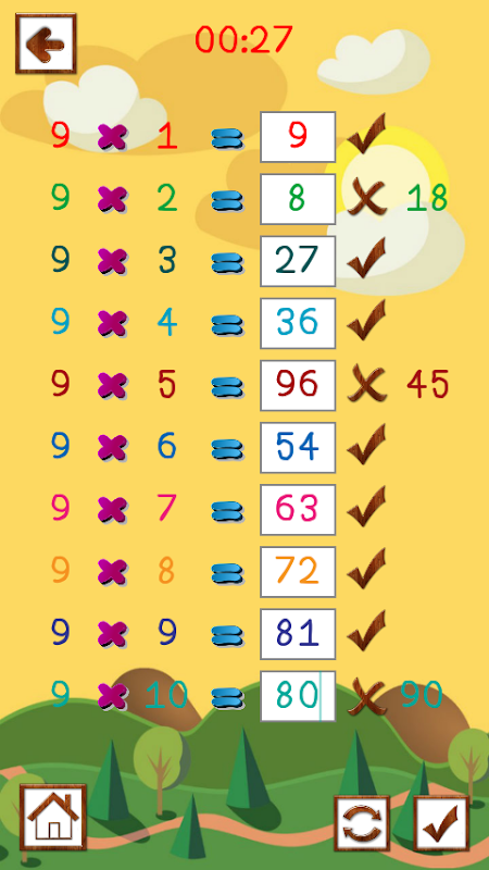 Working: Now let’s consider, you have selected the number 7 and pressed the button from the given 10 numbers. Your selection means you are ready to play the multiplication puzzle of number “7”. Now the puzzle starts and you have to start playing. As the puzzle starts you will see the set of numbers with the multiplication sign.
