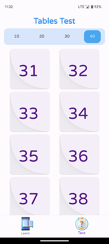 體驗一個用戶友好的互動平台,引導您完成從 1 到 40 的乘法表。每張表格都以生動的視覺效果精美呈現,讓學習變得愉快而有效。