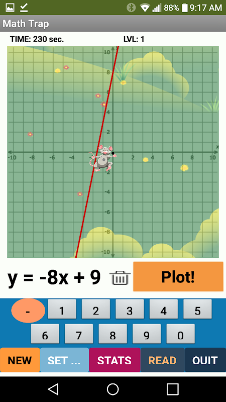 After you play this game for a while you’ll develop a pretty good intuitive understanding of the relationship between a linear equation and its plot on a Cartesian graph.