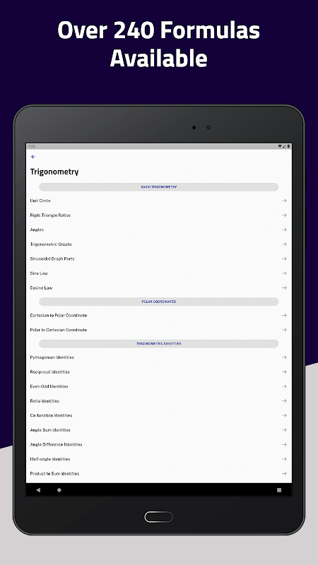 Math Wiser is your math equations library in your pocket, with 240+ formulas, postulates, and theorems! Easily compute for missing values of an equation by simply plugging in the given values!