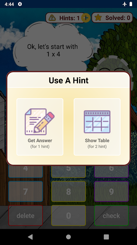You will receive rewards for your progress and you can use hints if you don't know the answer for the current problem, and you can also view the full multiplication table that you're practicing which will make it easier for you to solve other problems as well.