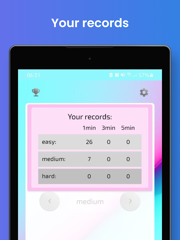 該應用程式有不同的難度級別,因此您將立即提升您的數學知識。只需選擇您想要練習數學的時間,您就會看到每次成績都有所提升!