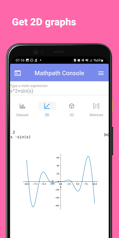 MathPath 解算器支援:不等式、積分、導數、極限、微分方程式、傅立葉級數,顯示二維和三維圖形,顯示資料集(線、點、柱)圖等等。它也透過 SympyGamma 提供微積分的分步解法。