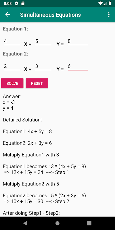 除了提供答案之外,Maths Equation Solver還逐步顯示詳細解決方案。