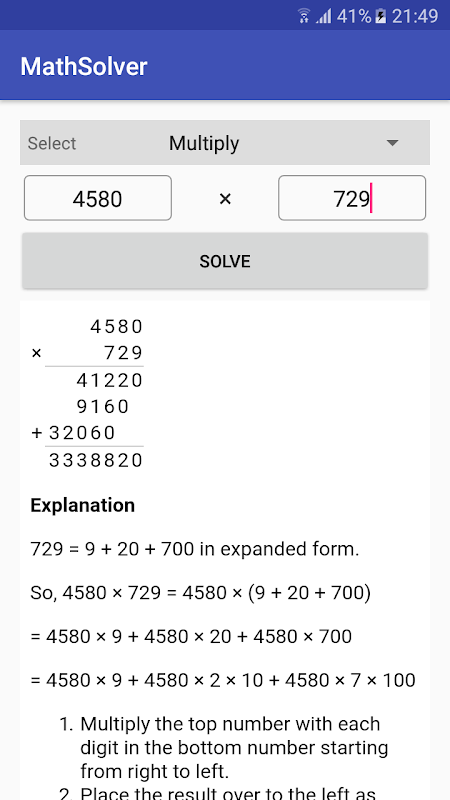 MathStep是一款免費的數學應用程序,旨在幫助初學者解決基本的數學概念。該應用程序將向您顯示有關課堂教學或日常生活中涉及數字的各種問題的分步解決方案。該應用程序還可以用作成人的數學複習和新學習者的家庭作業助手。