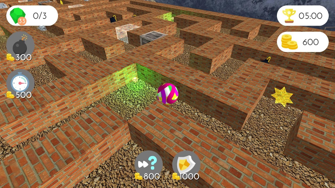 It is very easy to control the ball using virtual keys, you’ll learn it in no time. In the left bottom area, you can choose a viewing angle for the maze.