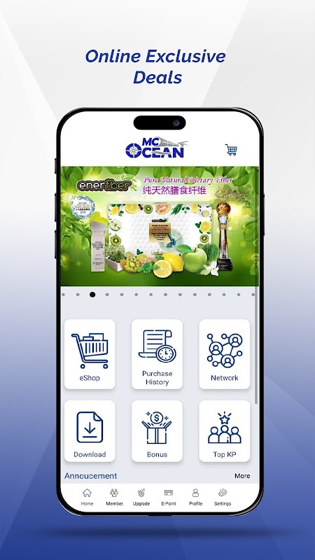 這是一款為向所有用戶介紹McOcean Online零售保健食品和健康計畫商店而開發的應用程式。可用的功能如下: