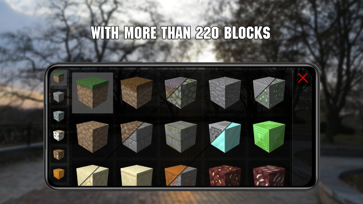 - 特點:遊戲的機制不會以任何方式限制你。你可以用大量的積木建造一座巨大的建築。實際上,安裝塊的數量不受限制。