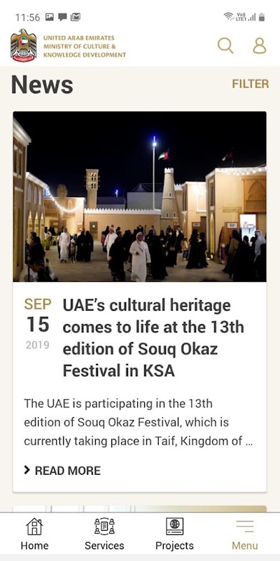 阿拉伯聯合酋長國文化與青年部的移動應用程序提供了許多服務,旨在使該州的公民和居民受益,並為跟上文化和知識進步的步伐做出了貢獻。
