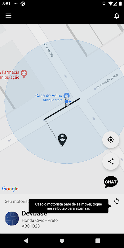 我們的應用程序允許您呼叫我們的一輛車並在地圖上跟踪汽車的移動,並在它到您家門口時收到通知。