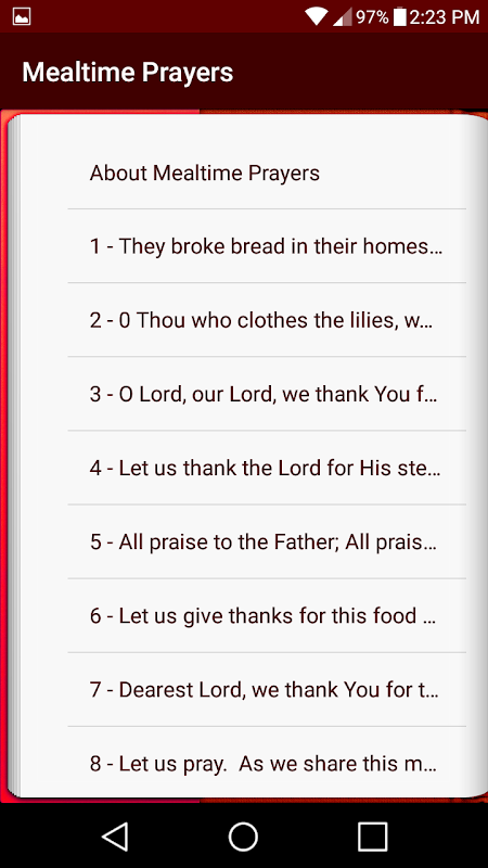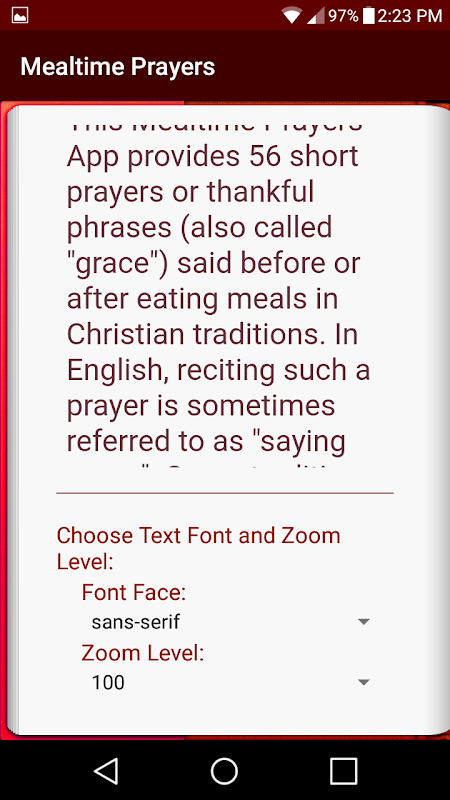 這個應用程序提供了 56 個簡短的祈禱或感謝短語(也稱為“恩典”)