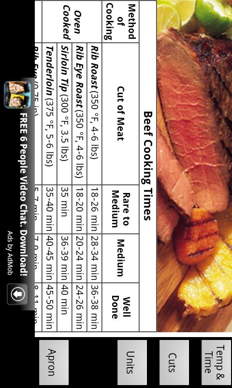 Quick reference to cooking meat using oven, grill and deep fry for beef, chicken, pork, fish and lamb. Includes quick diagram of difference cuts or parts to help selecting meat at the grocery store and more.