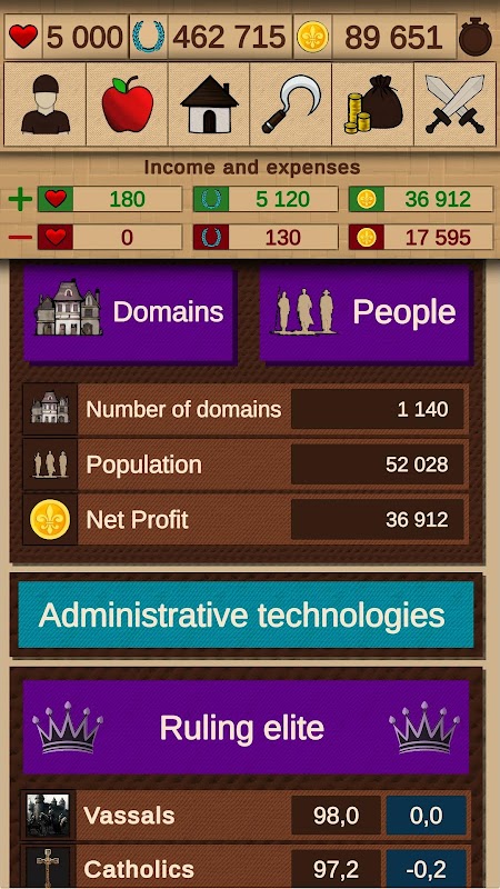 工作、購買衣服、武器和其他財產。繼續軍事行動,對於其中一些,您將需要雇用大量士兵。存錢,購買建築物並為他們升級。最重要的是,玩得開心。