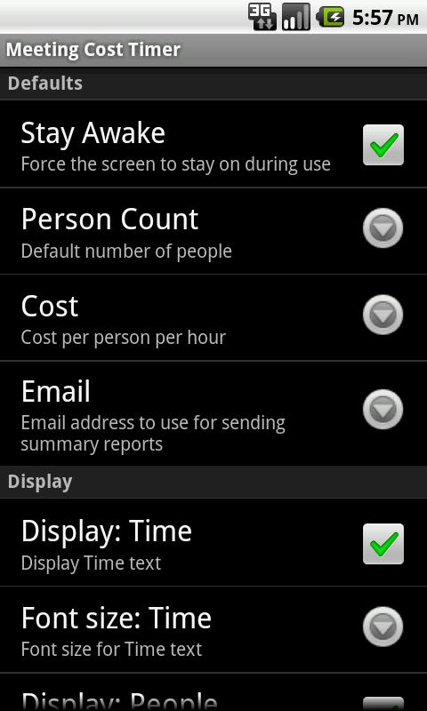 每人每小時平均成本和其他設置在設置菜單中,盡可能的乾淨,以保持主界面。