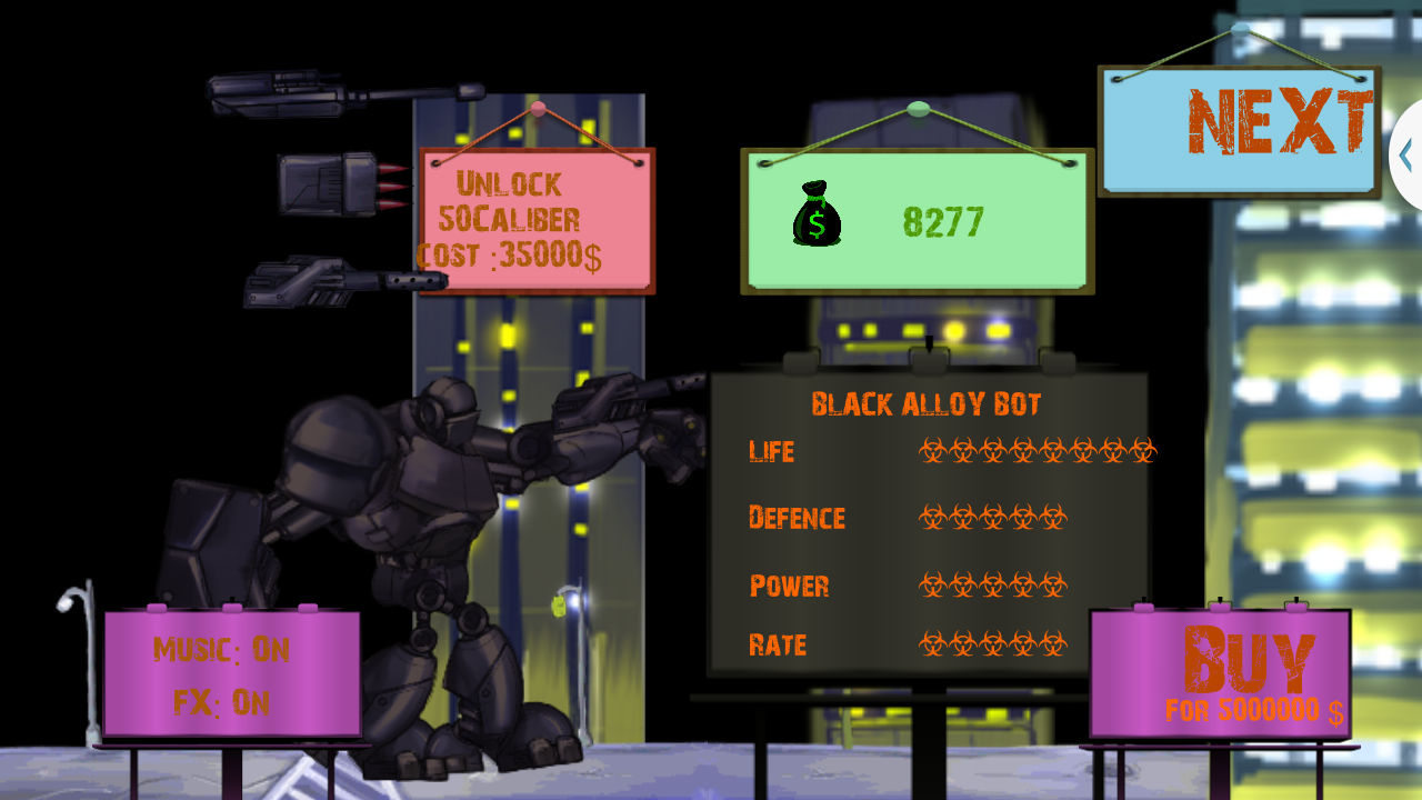 Unleash your Robo fury with our 50Caliber guns, Rocket Launchers and Laser Shots.