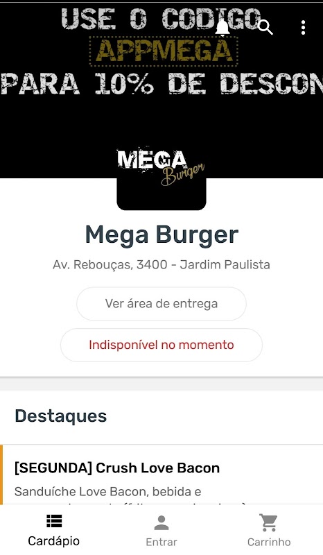 Peça Delivery para Mega Burger com poucos toques na tela do seu Android