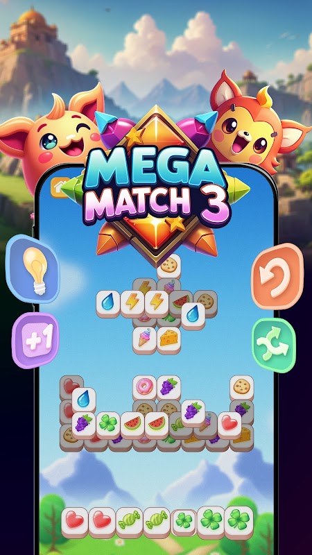 Mega Match 3 遊戲適合所有年齡層的玩家,提供每日獎勵、強化道具以及隨著遊戲而不斷演變的精美背景。