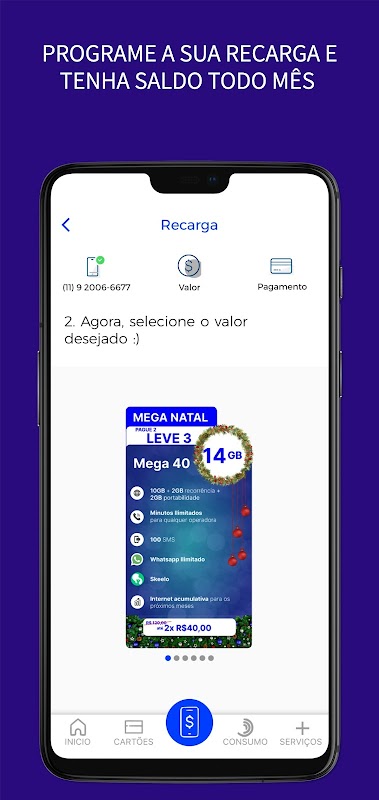 Mega Surf 用戶,該應用程序可讓您隨時隨地快速、簡單地訪問充值服務、餘額查詢(語音、互聯網和充值)和其他服務。