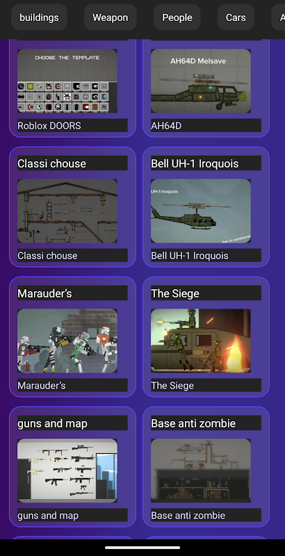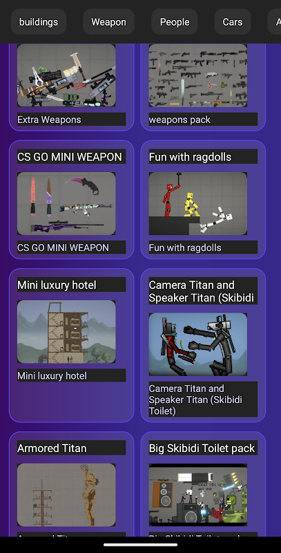 您可以找到所有流行的mods、skibidi 廁所,如Soccer、Doom Guy、SCP、VHS Sans、Undertale、Jotaru 和Star Platinum、Avatar、Modern Artillery、Mutants、Poppy playtime、Kraken、Lightsabers、Raptor、Bendy、Choo Choo Charles 、蜘蛛人和許多其他人。