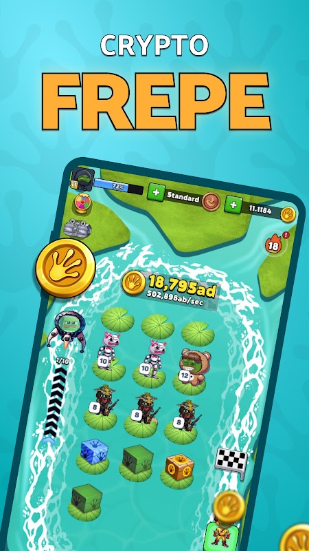 ⚡️ 合併並解鎖一系列可愛又古怪的 Frepes,收集所有 156 個獨特的角色,體驗遊戲中最有趣的時刻。在 Frepe 的 Crypto Quest 🤑 中完成每日任務和成就即可賺取更多加密貨幣。