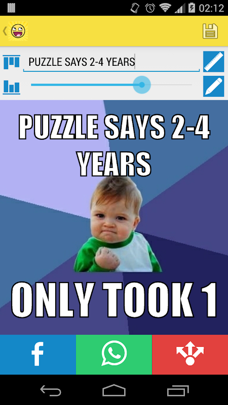Several images are already included and you can also add any image from your gallery, play with pictures of your friends and create a meme that spread over the Internet.