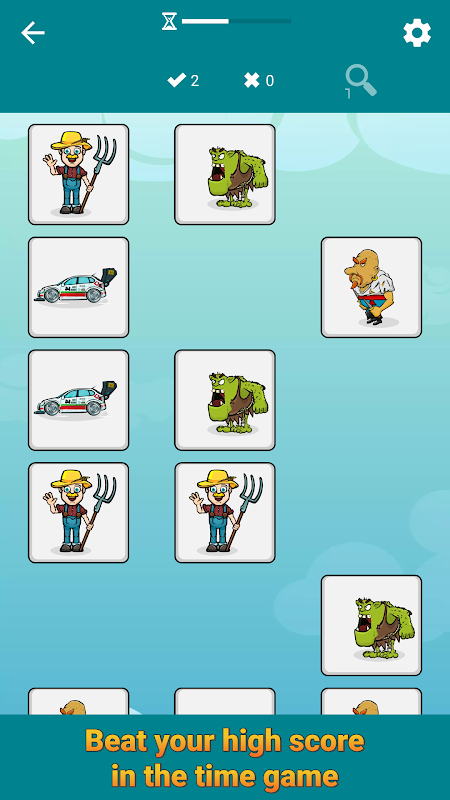 在時間遊戲模式中,速度至關重要。只有在給定時間內找到所有對,才能達到下一個等級。打破你的高分!