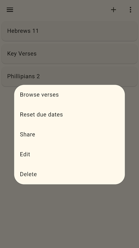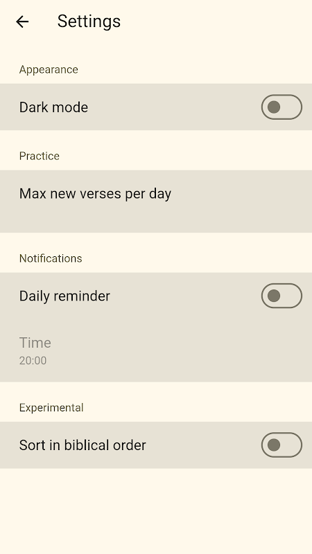 - 該應用程序使用間隔重複學習策略,您可以每天練習困難的詩句,而較少練習簡單的詩句。