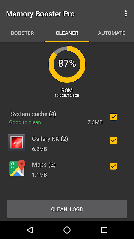 The best cleaner tool that you will ever find in Android. If you have it, Then there is nothing left in Android device that is cleanable. This cleaner can clean anything and everything. It can even clean the dirt on the screen ;). You will be surprised to see all the free memory after a full clean.