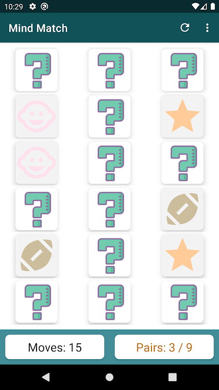 “ Mind Match”是經典的圖像匹配遊戲-查找成對的,面朝下開始的匹配卡。所有年齡段的人都很有趣,這是鍛煉大腦和提高注意力的一種好方法。該應用程序無廣告,界面簡潔。