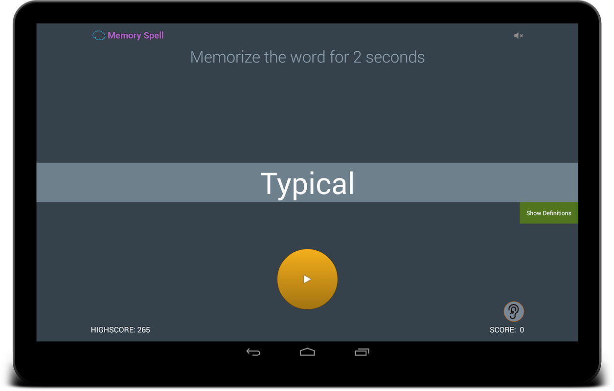 - 每个单词的分数依其难度而定 - 越难的单词得分越高,连续拼写正确可获得双倍得分!