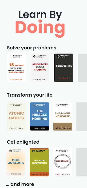 通過閱讀或收聽他們的音頻摘要,將最好的書籍付諸實踐。通過 500 多本最佳書籍的音頻和文本,將您的個人成長提升到一個新的水平。朝著你想要改變的方向改變你的生活。只需選擇你的下一本書。