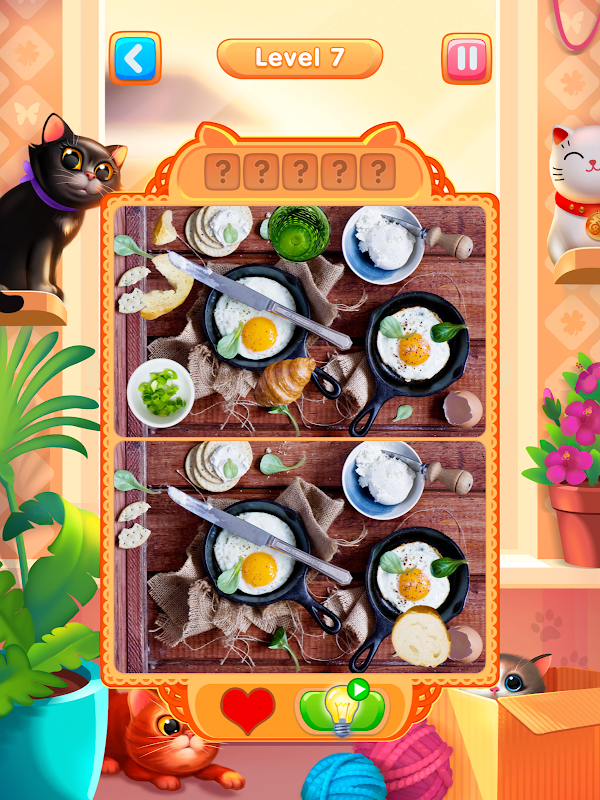我們為您準備了一個新的腦筋急轉彎動腦遊戲來尋找事物和差異。 您會發現 5 個不同之處並展現您的“貓的力量”。 “Meow Differences解謎:找找看找不同益智遊戲”解謎是一款益智遊戲,您必須在兩個看似相同的圖像之間找到差異和隱藏的對象。 找出不同之處,尋找隱藏的物品,訓練您的邏輯並培養對細節的關注。
