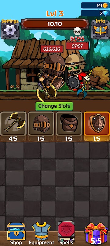 While you are busy developing your character, he himself will fight enemies with the help of auto-battle, you only need to pump the hero in time and supply him with new armor and weapons