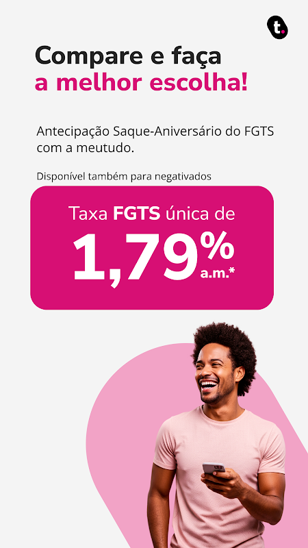如果您在 FGTS 帳戶中有餘額,並選擇了生日提現,且需要快速獲得現金,即可申請此貸款。貸款可享有年息折扣,直接從您的 FGTS 餘額中扣除,不會影響您的月收入。