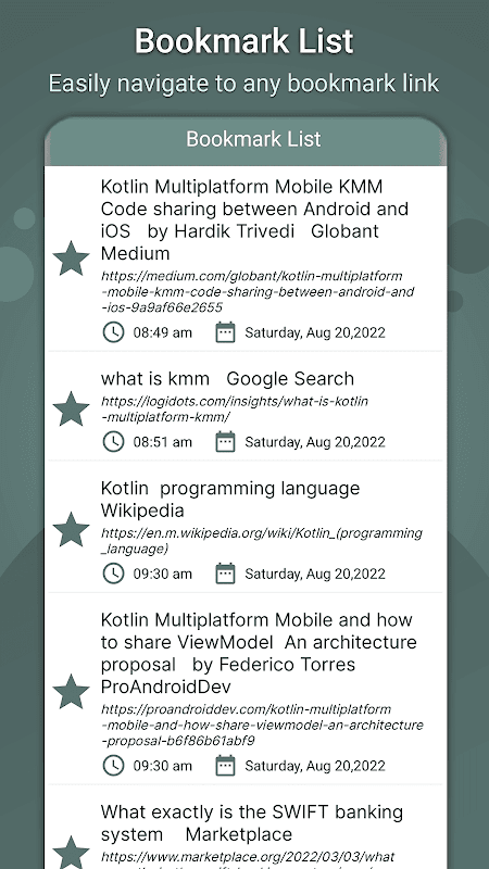 MHTML 文件打開器和 MHT 查看器是一個免費的應用程序,您可以通過它閱讀任何 MHT 文件並輕鬆地在任何社交平台上共享它。 MHTML 閱讀器應用程序保留所有訪問過的網頁的歷史記錄。您還可以為任何網頁鏈接添加書籤,並在應用程序中輕鬆打開任何書籤鏈接。