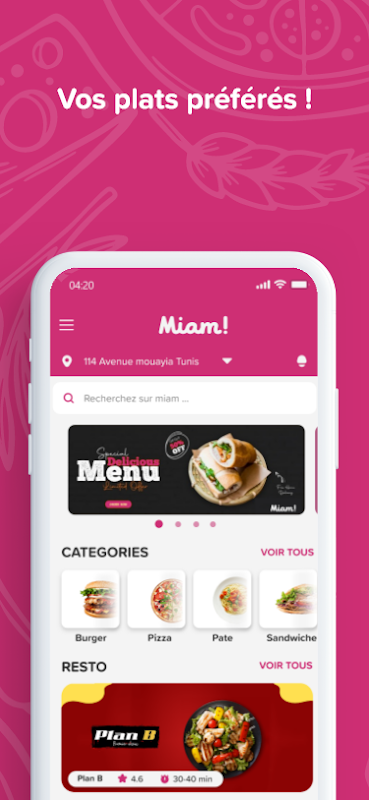 幾分鐘就到您的門 有了 Miam,您只需點擊一下即可獲得所需的一切,並在幾分鐘內交付。選擇最適合您的:送貨或外賣。取貨很容易:您下訂單並在餐廳準備好後自行取貨。如果您想免排隊並節省時間,那就太完美了——您也可以通過我們的平台輕鬆付款。如果您選擇外送,我們的一位快遞員會將餐廳食物送到您家門口,幾分鐘內即可無縫送達!