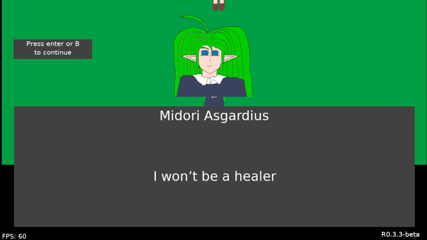 目前,遊戲處於測試開發階段。穀神星是一顆位於小行星帶的矮行星,早在地球誕生前,這裡就存在著智慧生命。大多數小行星帶的原住民都有尖耳朵。此外,還有以動物為基礎的類人生物。自從他們的星球被酒精飛盤摧毀後,宇宙中的所有人類都生活在這裡,但如今僅存的人類寥寥無幾。你是15歲的精靈少女綠·阿斯加迪斯,也被稱為「行走的爆彈」。你是海藏魔法學校的學生。你最好的朋友是“金槍魚”戴安娜·阿斯加迪斯和“中二病貓”六花·格魯布。超過10個可操作角色等你來挑戰。消滅功夫搗蛋鬼,對抗彈幕主題的Boss,解開刺激的謎題,挖掘垃圾桶,尋找漂亮的多矢量潛艇,擊敗火星人,並從獨特的視角探索宇宙的真相。如果你是狂熱玩家,不妨試試我們的超級硬派模式。保持友善,祝你有個快樂的「不開心」週年紀念日。如果你對這款遊戲有任何疑問,可以諮詢你的父親兼Kaizo的校長:Page Asgardius。你能揭開Midori火爆性格背後的秘密嗎?