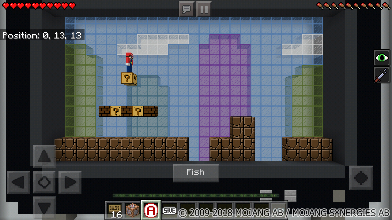 An admirable gameplay on a video console inside the Minecraft PE game will definitely be a welcome surprise for you. Insert a disk, take a joystick, and start playing Minario, a famous console game in the Minecraft world. The MCPE map Minario provides you with the opportunity to play your favorite arcade inside the game that was so popular on old-school TV-consoles.