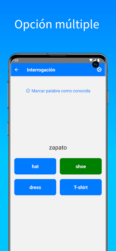 您可以查看每個單詞列表,然後使用 3 種不同的方式進行訓練:多項選擇、抽認卡和書寫。當您練習完單詞後,您熟悉的單詞將顯示為綠色,您錯過的單詞將顯示為紅色。這樣你就可以輕鬆複習對你來說困難的單詞。您還可以指出已知的單詞,這些單詞將不再出現在審訊中。