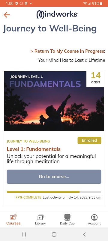哇!這是一個全新的應用程序版本,包含結構非常好的 14 天免費課程。隨時隨地輕鬆訪問您的所有冥想課程、引導式冥想、視頻心靈對話、冥想計時器和每日沈思。使用 Mindworks Meditation Courses 應用程序在您的網絡瀏覽器和移動設備之間享受無縫體驗。