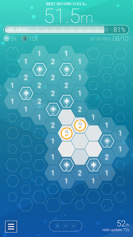 Play Divehex in your reminiscence of same rules from the classic minesweeper. This game will offer you a full of thrilling tensions and excitements of puzzling arcade games. The real challenges starts at 2,000m deep! If you're a fan of the classic minesweeper, you will definitely fall in love with Divehex :)