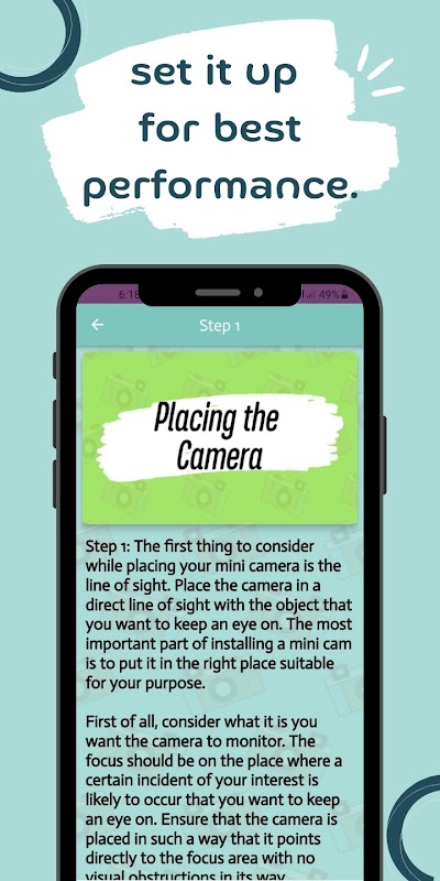 Camera Guide 應用程序,查看不同 Mini Security Cameras 的圖片,然後