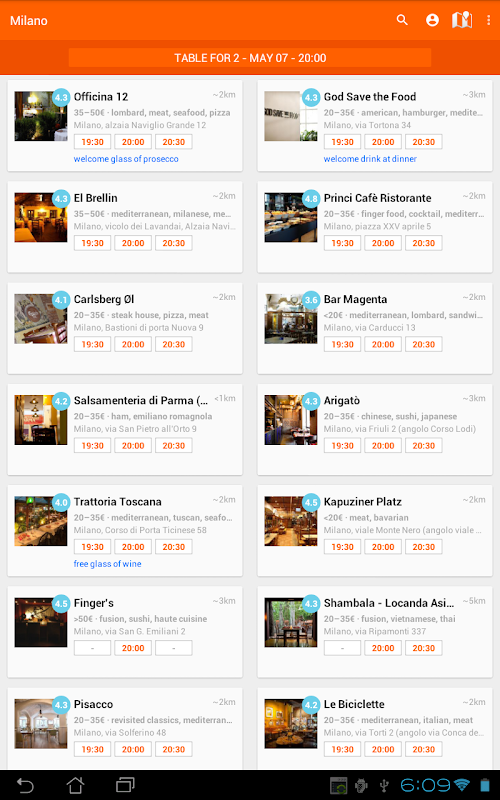 Prenota a qualsiasi ora un tavolo nel tuo ristorante preferito con conferma istantanea, a Milano, Roma e molte altre città in Italia!