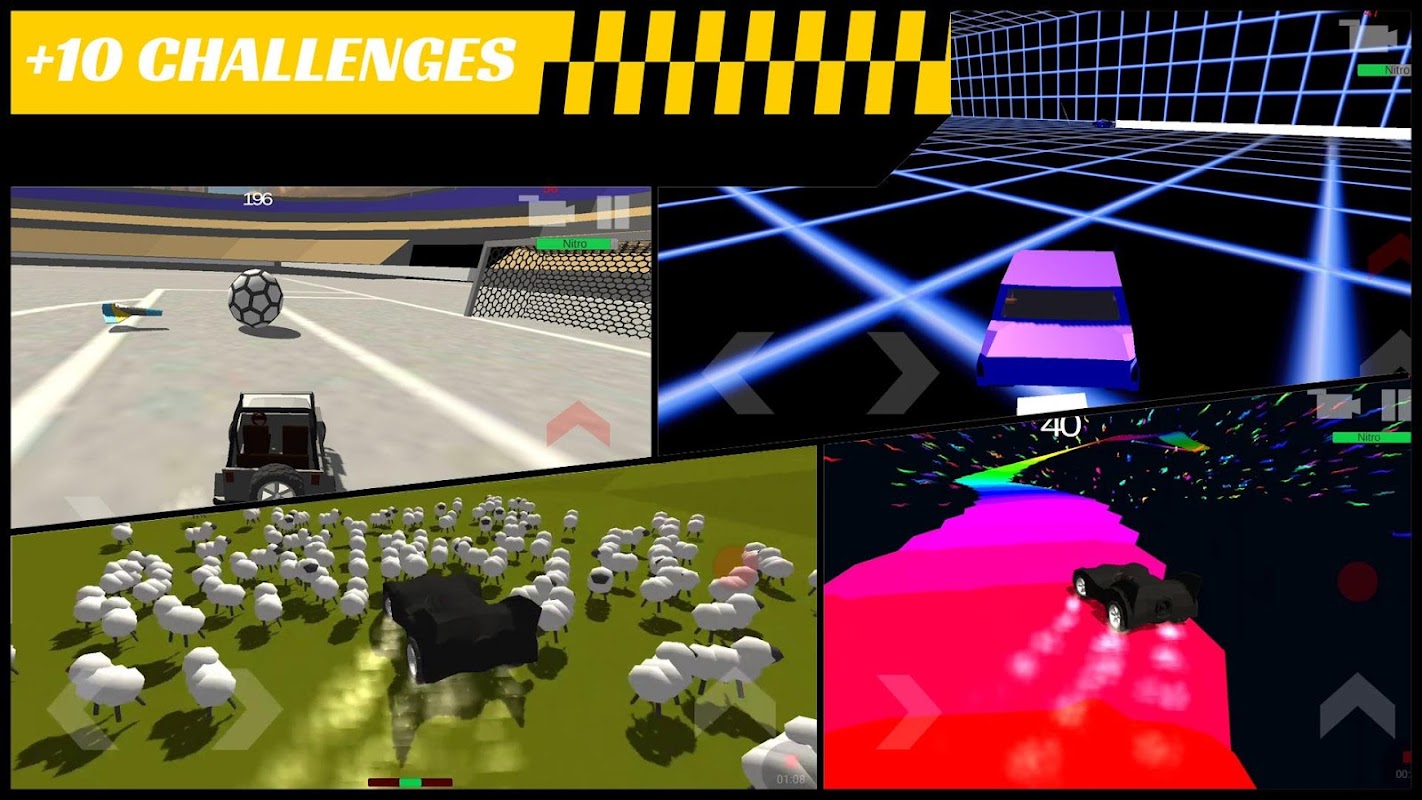 駕駛您最喜歡的汽車之一,享受 10 多種不同的挑戰。從像無限賽跑風格的遊戲一樣躲避交通的無限比賽,到隨機路徑的拉力賽、電子戰、保齡球、跳躍、彩虹賽,甚至用一個巨大的足球進球。