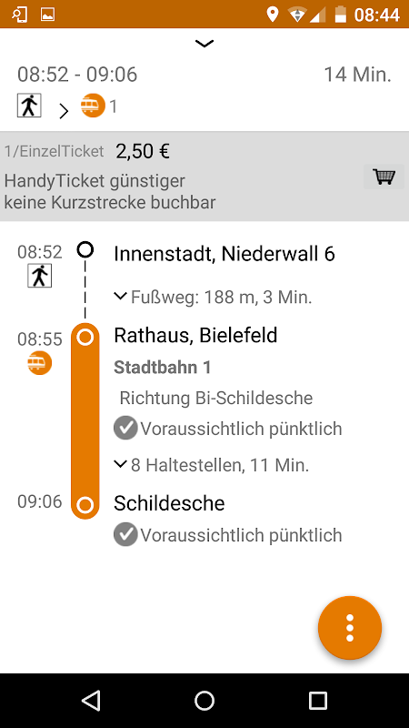 時間表的信息:找到最快的路線的巴士和火車從您的位置或起始地址到目的 - 從門到門。除公共汽車和火車優選的化合物作為收藏,呼籲資費信息公共交通Bielefeld或購買相同適合票。通過短信,電子郵件,WhatsApp的或日曆共享。您的連接