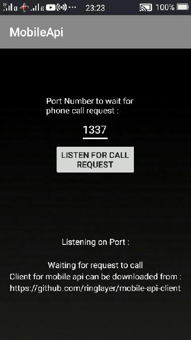 Mobile Api is an Application that will create a service to listen on specific port number defined by user. The service will start once the user click listen button. This service then will wait for specific tcp port packet containing a request to call a phone number.