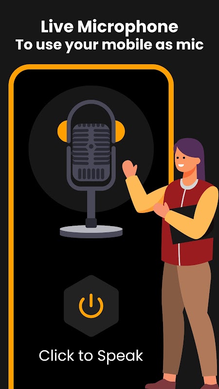 手機麥克風應用程序易於使用,可將您的手機連接到聲音輸出設備,讓您可以將其用作麥克風。它與藍牙麥克風配合使用,將音頻發送到揚聲器以進行公共廣播或唱歌。