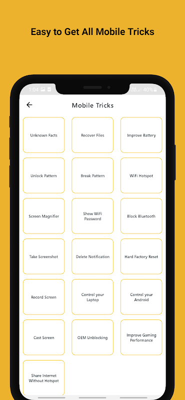 App includes secrets codes of all mobile companies and all Android mobiles. You can view tips and tricks from app to view hidden settings and information.