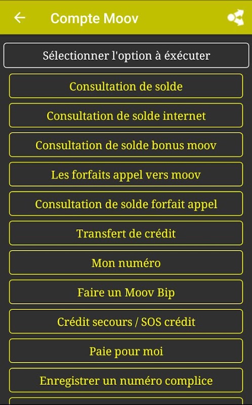 Moblie USSD代碼只需單擊幾下,即可為您提供所有打包代碼(通話,互聯網),賬單付款(Canal +,CEET,TDE,現金實力...)和T-Money Flooz操作。